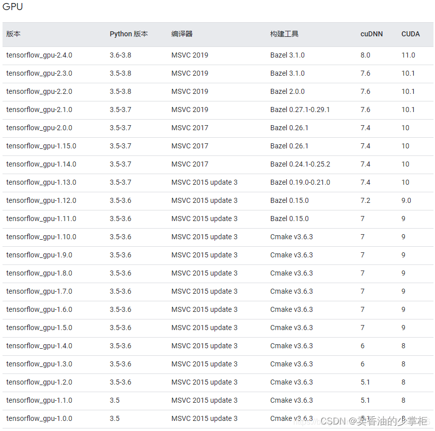 最新tensorflow_gpu版本对应python,cuda,MSVC,cudnn关系一览表:更新至2022年初