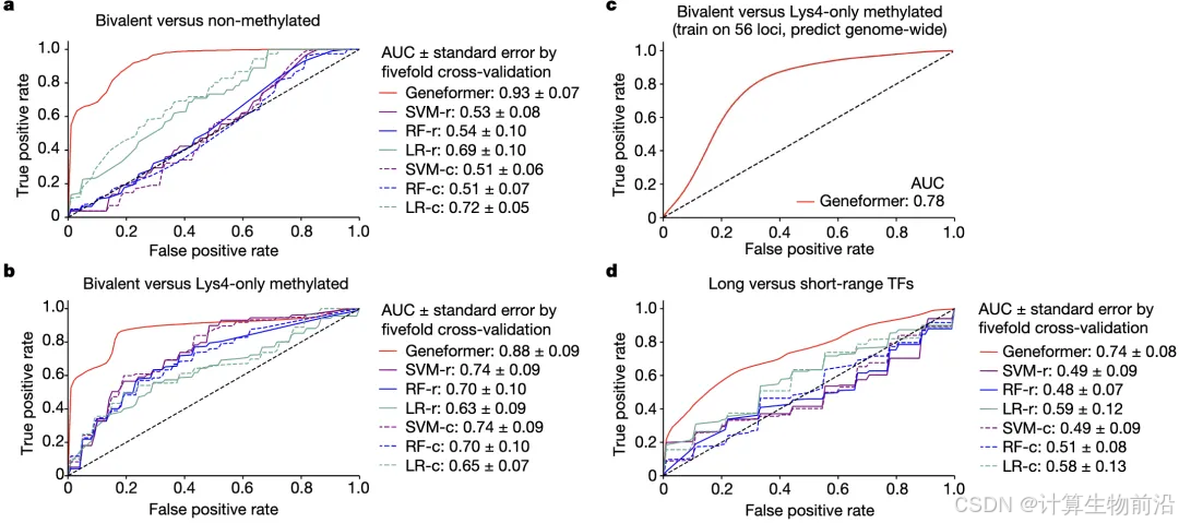 仅用56个保守区域的染色质标记数据微调,即可在全基因组范围预测双价染色质(H3K4me3/H3K27me3共标记)状态(AUC 0.78),准确识别MEF2等长程调控因子
