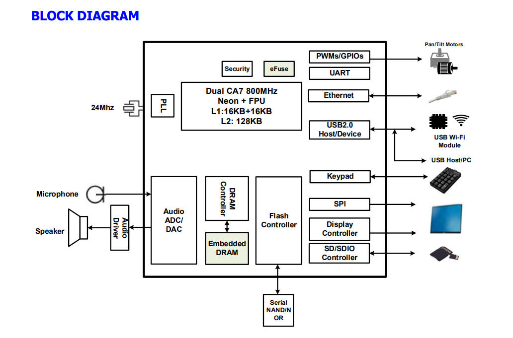 - 支持SDIO 2.0接口、USB 2.0 host;