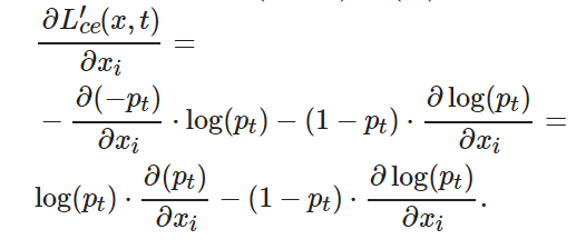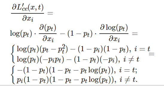 为了让引入调制因子后的损失函数能够替换原有的损失函数, 下面进行损失函数的前向和反向传播推导. 损失函数的前向传播计算公式如下
