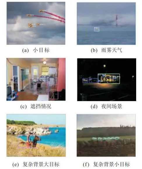 图 3给出了不同情况下的目标检测结果, 可以看出, 本文算法对小目标的检测、存在遮挡物的检测以及在云雾天气和夜间的检测都有不错的效果.