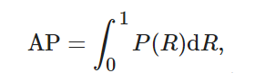 以召回率为横坐标, 以准确率为纵坐标, 二者形成的曲线称为p-r曲线, 用来显示检测模型在准确率与召回率之间的平衡. p-r曲线下的面积为该类别的平均精度(average precision, AP). 在多类别分类中, 通过求取各个类别AP的均值来计算模型整体的检测性能指标, 其计算方法如下: