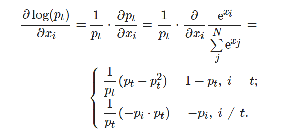 对于多分类问题, 仍然采用交叉熵损失函数, 区别在于p的取值不再由sigmod激活函数的输出值所定义, 而是采用softmax函数来定义该变量, 这时p为某一类的回归结果, 即