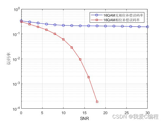 legend('16QAM无相位补偿误码率','16QAM相位补偿误码率');