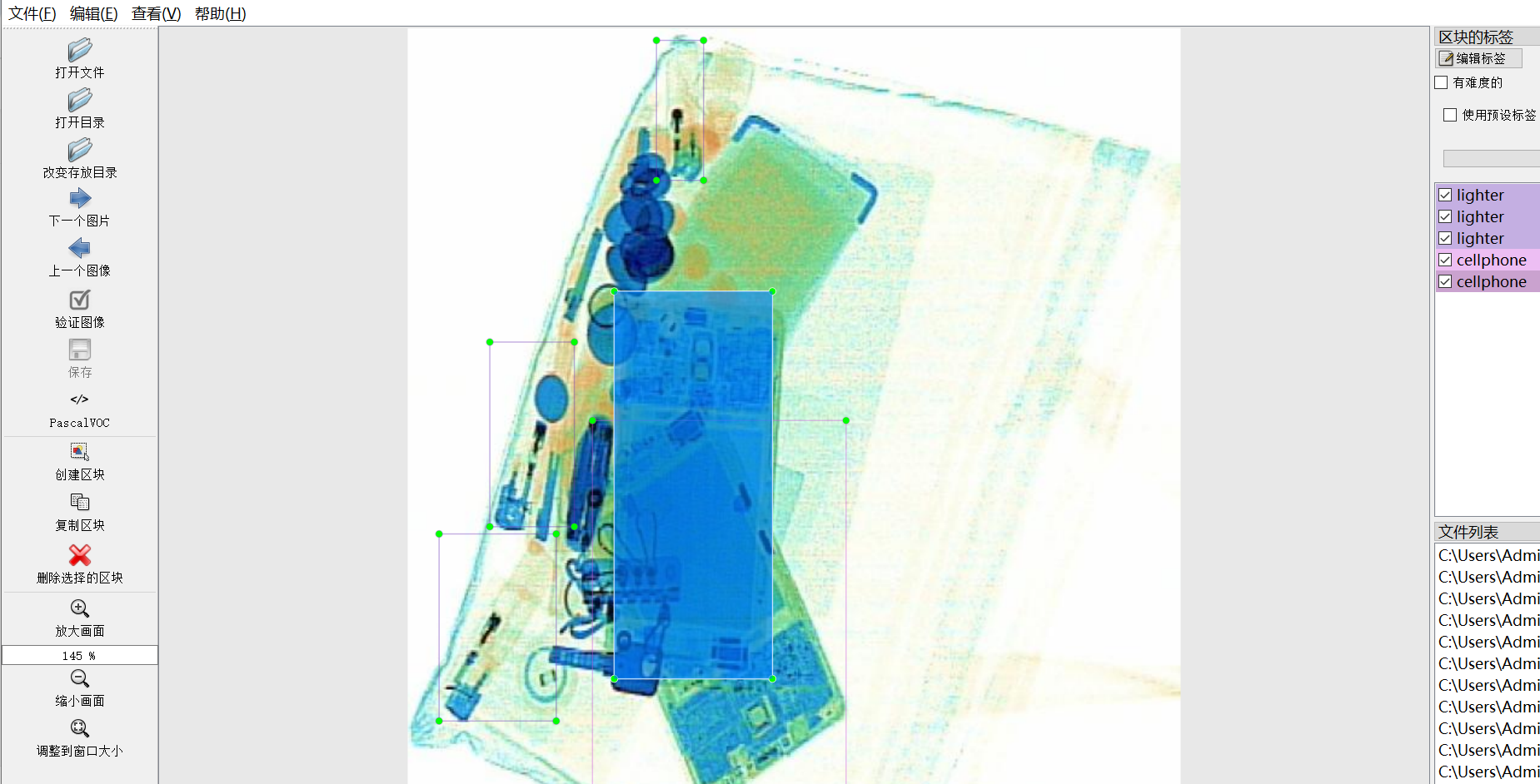 【目标检测】地铁安检机X光危险物品检测数据集2749张YOLO+VOC数据集格式:VOC格式+YOLO格式压缩包内含:3个文件夹,分别存储图片、xml、txt文件JPEGImages文件夹中jpg图片总计:2749Annotations文件夹中xml文件总计:2749labels文件夹中txt文件总计:2749标签种类数:8标签名称:["camera","cellphone","electroni