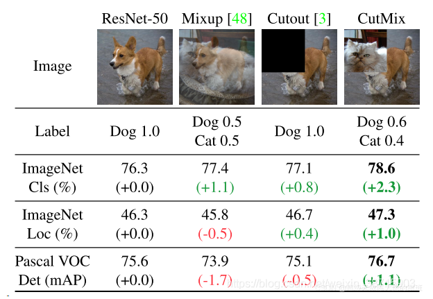 就是将一部分区域cut掉但不填充0像素而是随机填充训练集中的其他数据的区域像素值,分类结果按一定的比例分配;带Mix就是混合的意思,带Cut就是裁剪的意思。
