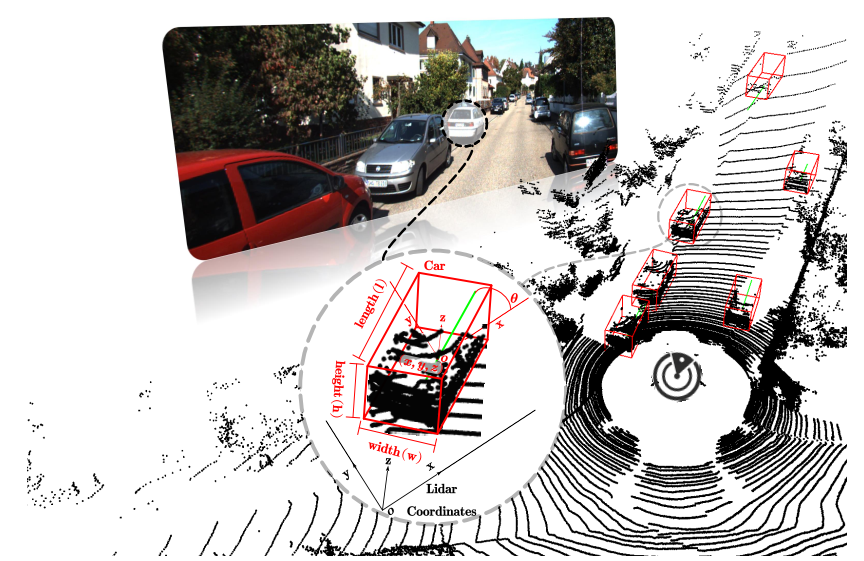 从点云检测3D对象的概述。3D对象检测是从3D传感器数据中检测物理对象,估计3D边界框并指定特定类别,这里为激光雷达坐标系。