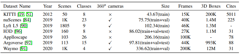 自动驾驶环境下3D目标检测的公共可用数据集摘要