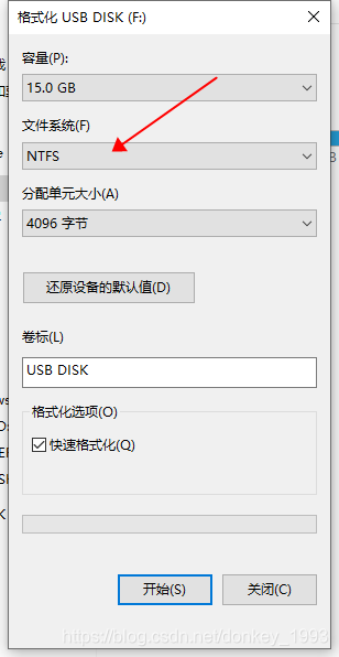 1. 将U盘格式化,格式化的过程中文件系统选择NTFS。