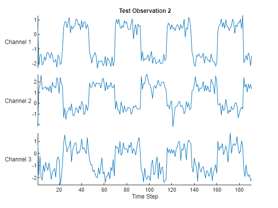 从 WaveformData.mat 加载示例数据。数据是序列的 numObservations×1 元胞数组,其中 numObservations 是序列数。每个序列都是一个 numChannels×-numTimeSteps 数值数组,其中 numChannels 是序列的通道数,numTimeSteps 是序列的时间步数。