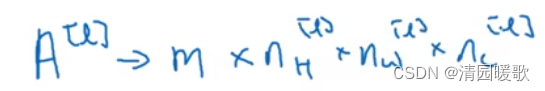 在第 l 层,图片大小为 n_H^[l-1] × n_W^[l-1] × n_C^[l-1],而 l 层的输入为上一层 l-1层的输出