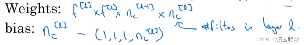 所以输出图像大小为 n_H^[l] × n_W^[l] × n_C^[l]