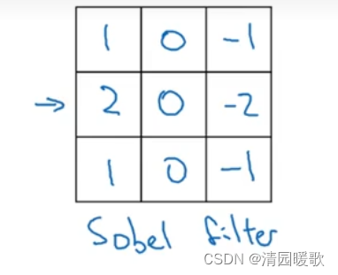 sobel 滤波器:增加了中间的权值,也就是处在图像中间的像素点,这使得结果的鲁棒性更高