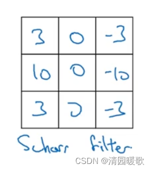 Scharr 滤波器:与之前有完全不一样的特性,但也是一种垂直边缘检测