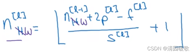 设padding为p,步长stride为s。则输出为(n+2p-f+1)/ s + 1 ×(n+2p-f+1)/ s + 1