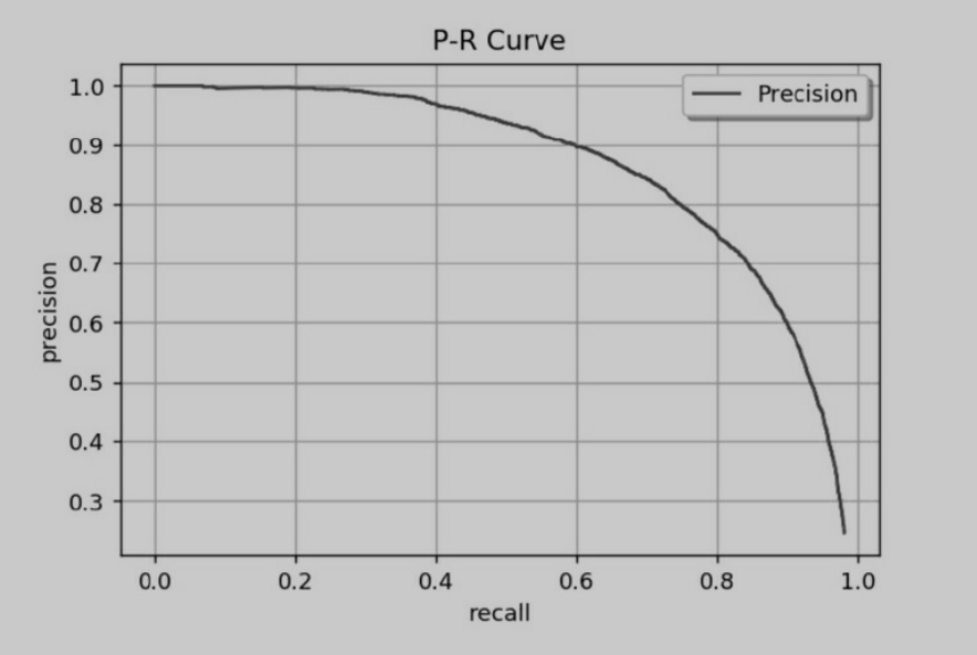 遍历到每一个预测框时,都可以生成一个对应的P与R,这两个值 可以组成一个点(R,P),将所有的点绘制成曲线,即形成了P-R曲线