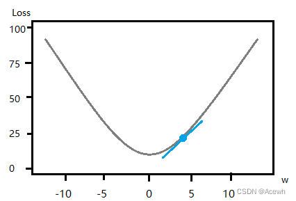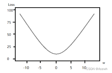 假定代价函数只有一个参数 w w w ,参数 w w w 与代价函数 l o s s loss loss 的关系如下: