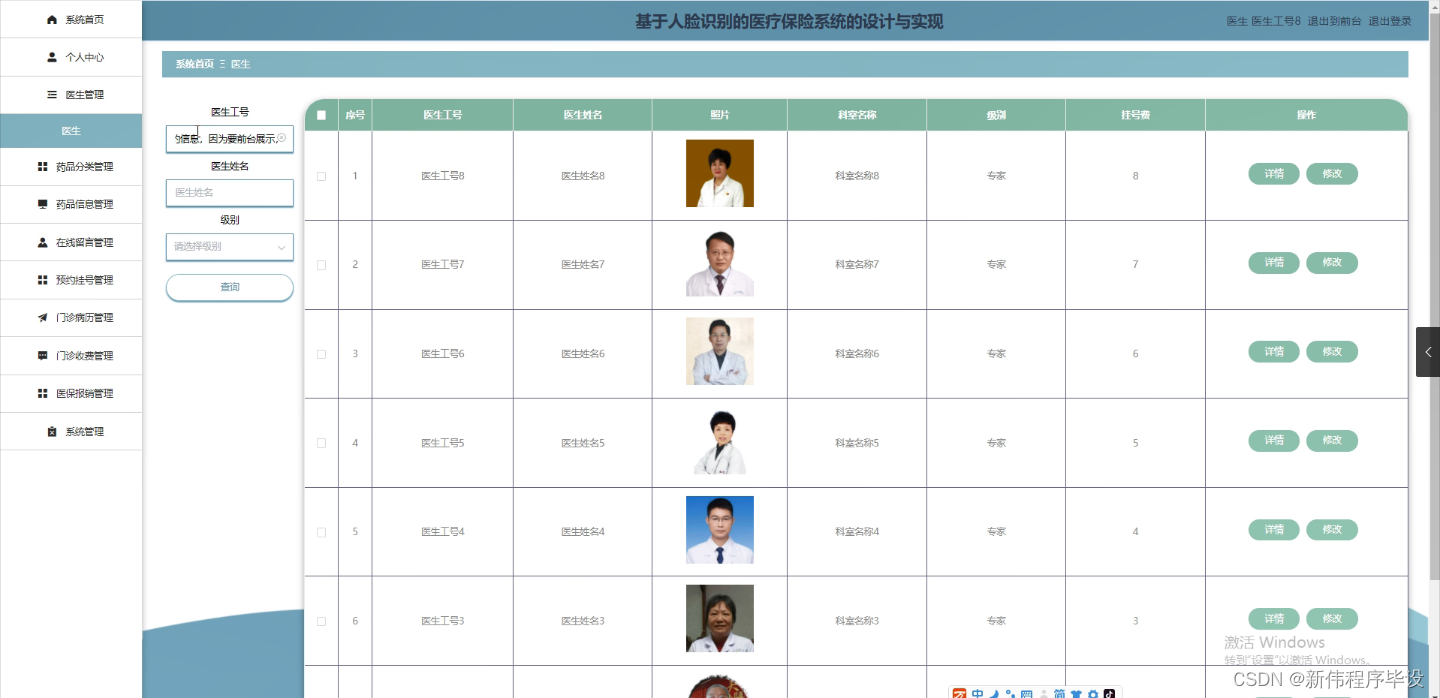 - 设计并实现一个功能完善、易于使用的基于人脸识别的医疗保险系统。