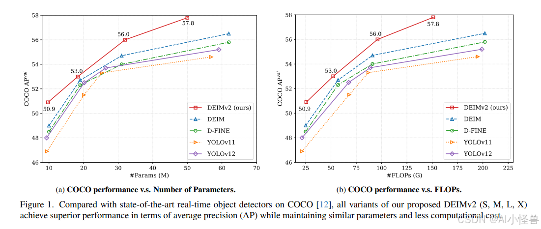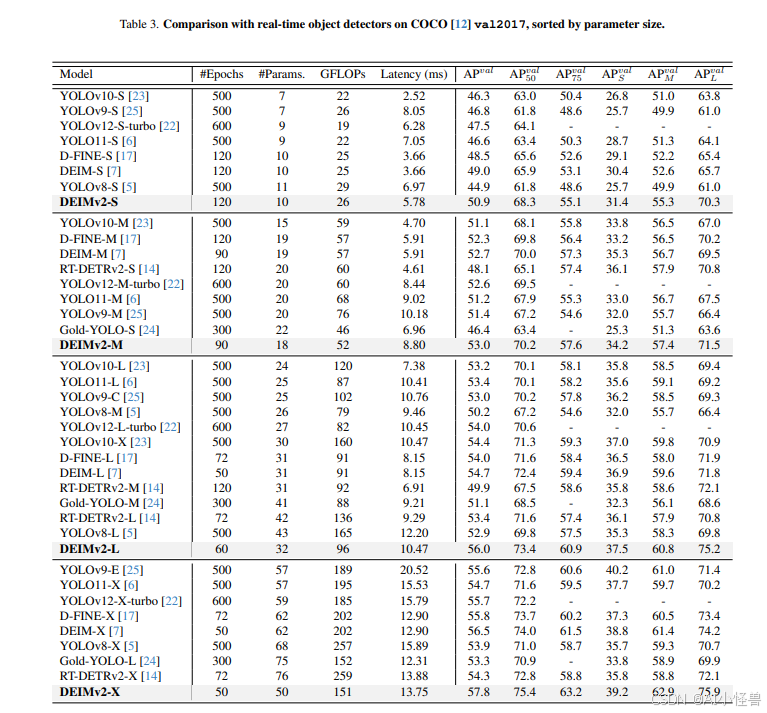 最后,我们在 COCO 数据集上证明,DEIMv2 在所有资源设置下均优于现有的最先进方法,建立了新的 SOTA 结果。