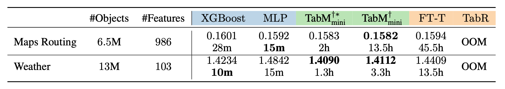 摘要。简单的MLP是最快的深度学习模型,而TabM是亚军。基于注意力和检索的模型显著较慢。总体而言,包括TabM在内的类似MLP的模型形成了一组具有代表性的实用和可访问的表格深度学习基准。