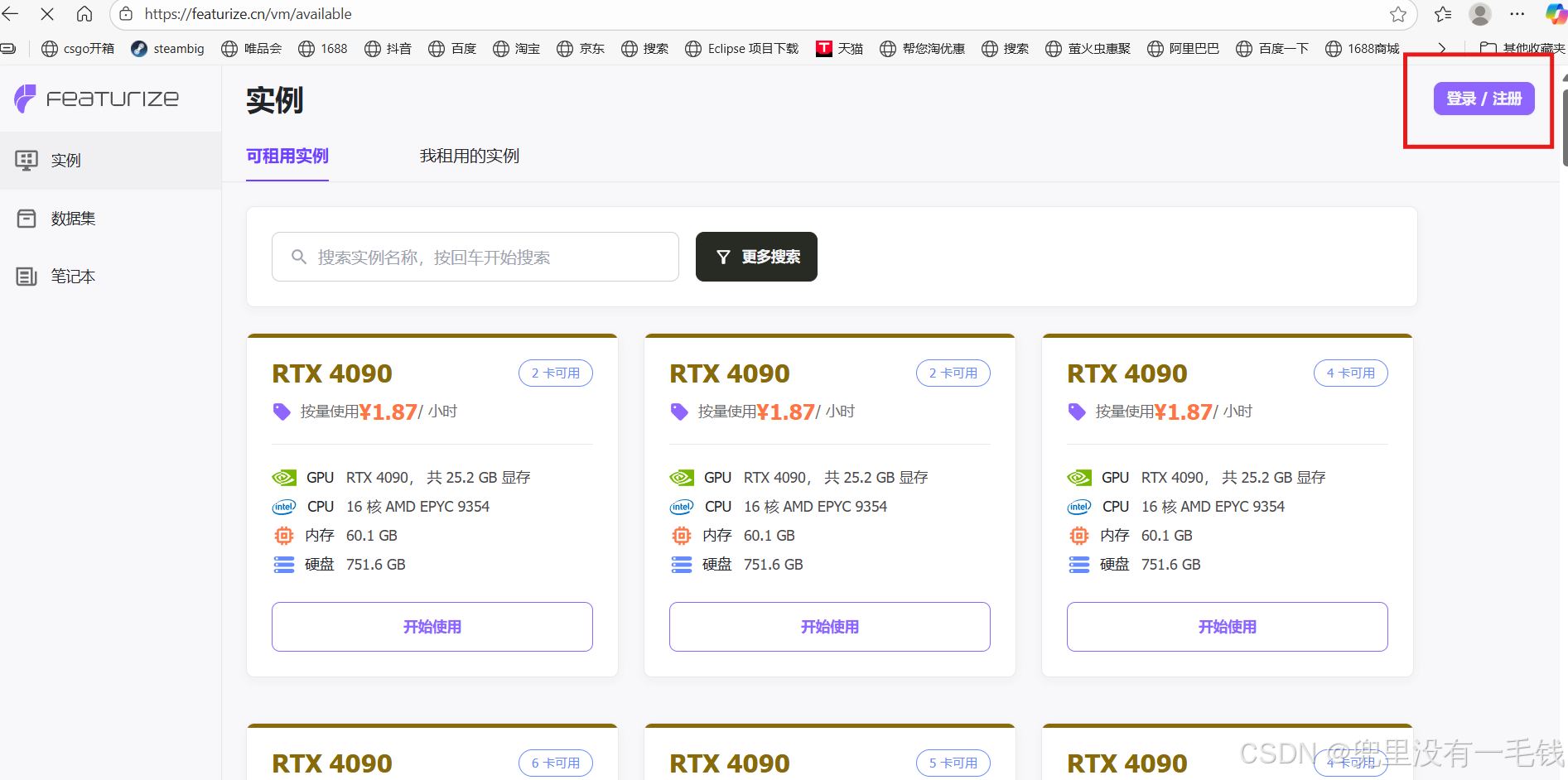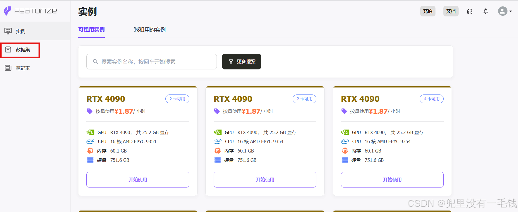 图1 Featurize实例租用界面