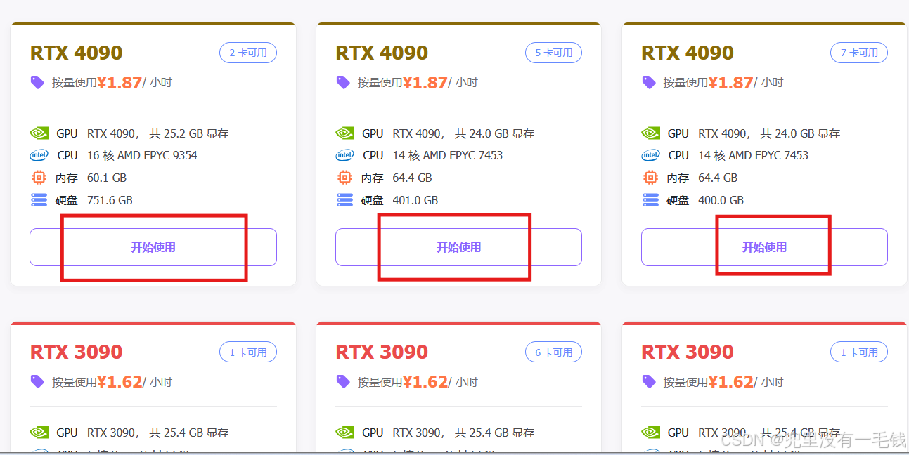 完成数据集的上传就可以开始进行租用服务器了,如图8选择合适的价格进行租用。再根据图9至至图10进行操作。