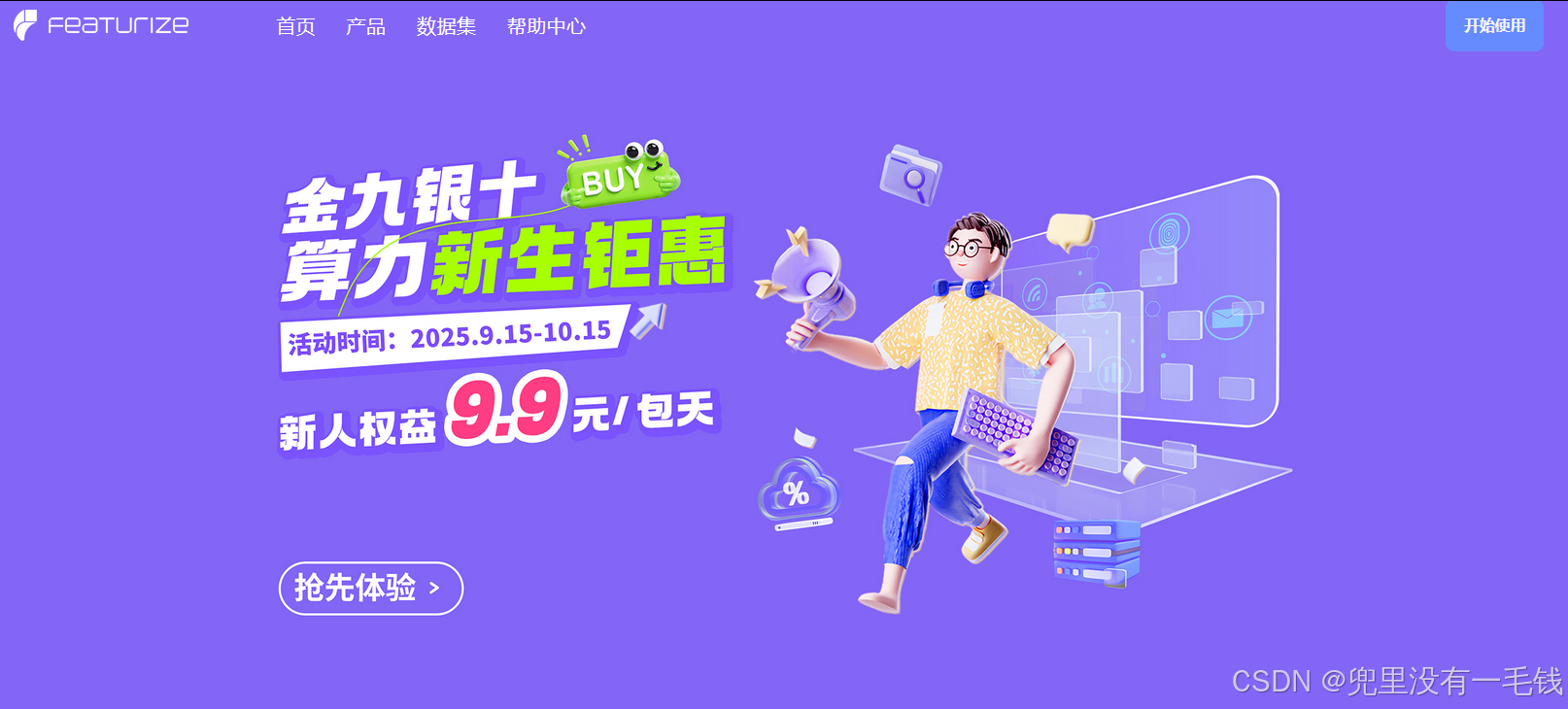 此外,Featurize还有大量的福利,如在校学生认证,可获得30元平台代金券(图18)与9.15-10.15期间注册用户可享受9.9元/包天使用RTX4090服务器福利(图19)。