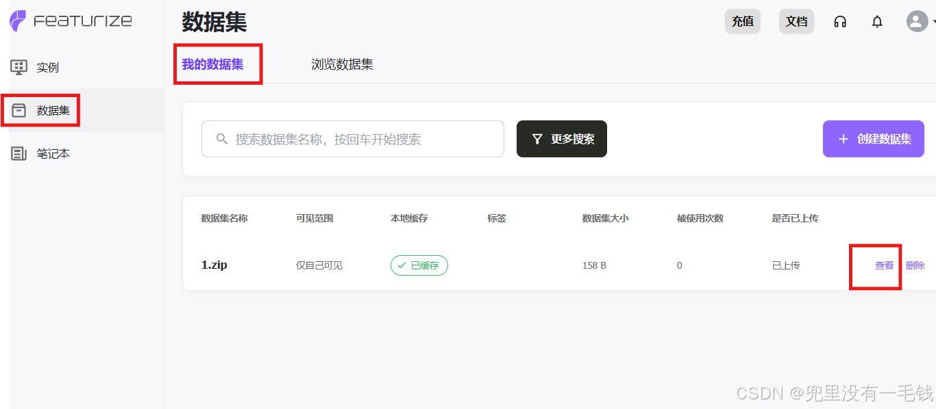 Featurize提供了高效快捷的数据集上传流程,无需使用其他软件即可完成上传操作,数据上传操作如图5——图7所示。