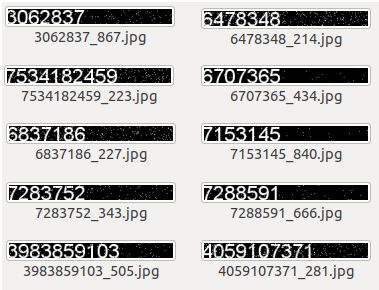 执行 gen_text(10000) 后生成的图片集如下,文件名由序号和文字标签组成: