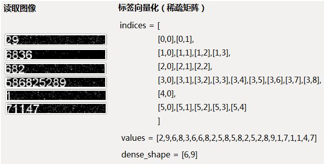 由于文字是不定长的,因此,如果读取图片并获取标签,然后将标签存放在一个紧密矩阵中进行向量化,那将会出现大量的零元素,很浪费空间。因此,使用稀疏矩阵对标签进行向量化。所谓“稀疏矩阵”就是矩阵中的零元素远远多于非零元素,采用这种方式存储可有效节约空间。