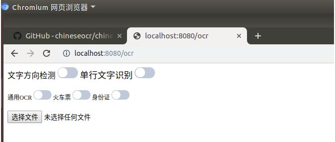 通过执行app.py启动web服务,启动后便能直接上传图片进行文字识别,执行命令为