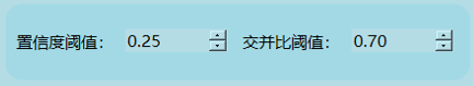 (2)交并比阈值:当前设置为0.70,表示系统只会认为交并比(IoU)超过70%的检测框为有效结果。交并比是检测框与真实框重叠区域的比值,用于衡量两个框的相似程度,值越高表明重叠程度越高。