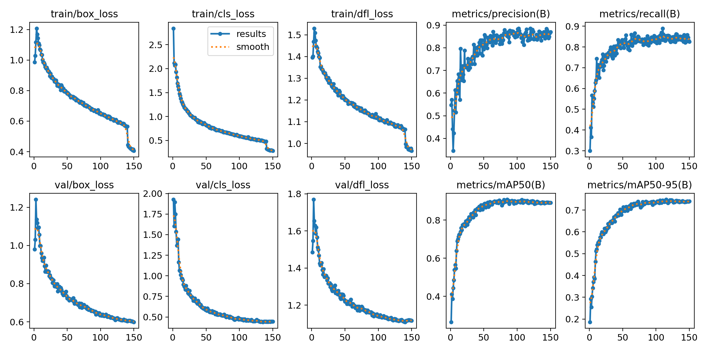 (2)epochs=150: 训练的轮数设置为150轮。