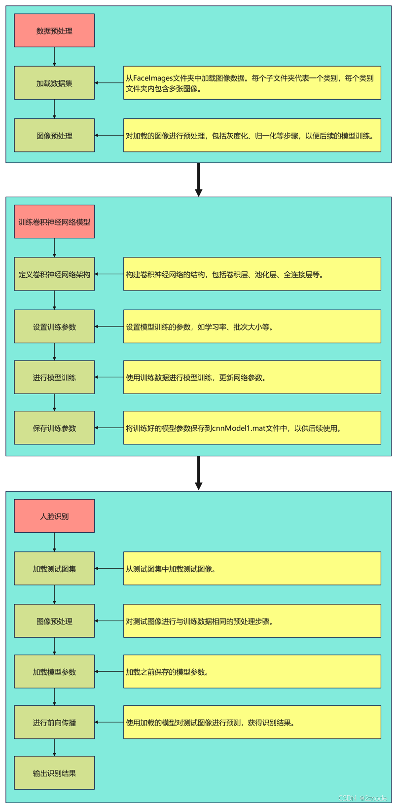 系统主要包括数据预处理、模型训练和人脸识别三个模块。在数据预处理中,我们收集并处理了包含多个类别的人脸图像数据集。在模型训练过程中,使用MATLAB实现了卷积神经网络模型的训练,并保存了训练好的模型参数。