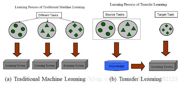 迁移学习的来源是关注的场景缺少足够的数据来完成训练,在这种情况下你需要通过迁移学习来实现模型本身的泛化能力,也就是说当前场景数据集和label不多,但是相关的数据集多,同时也比较类似,所以可以用来掺和在一起增加数据集的量。