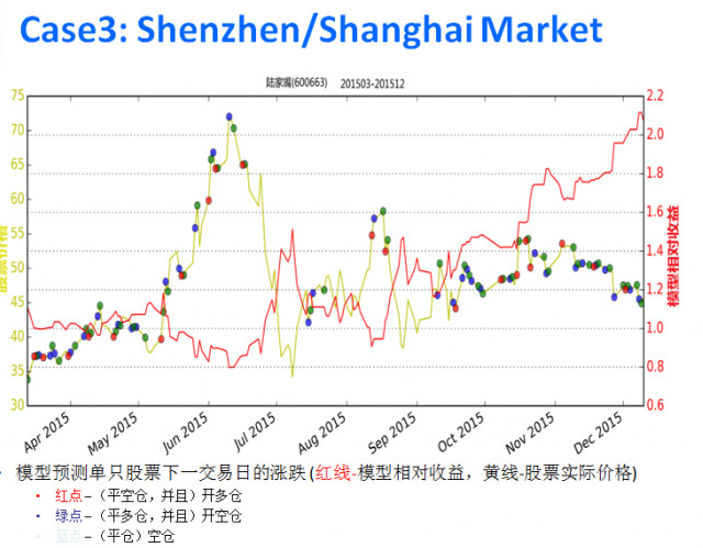 香港科技大学杨强教授的学生就把迁移学习应用到大家公认的很难的领域中——预测股市走势。下图所示为 A 股里面的某个股票,用过去十年的数据训练该模型。首先,运用数据之间的连接,产生不同的状态,让各个状态之间能够互相迁移。其次,不同状态之间将发生变化,他们用了一个强化学习器模拟这种变化。最后,他们发现深度学习的隐含层里面会自动产生几百个状态,基本就能够对这十年来的经济状况做出一个很完善的总结。