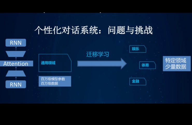 训练一个通用型的对话系统,该系统可能是闲聊型,也可能是一个任务型的。但是,我们可以根据在特定领域的小数据修正它,使得这个对话系统适应不同任务。比如,一个用户想买咖啡,他并不想回答所有繁琐的问题,例如是要大杯小杯,热的冷的?