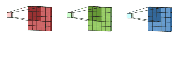 这意味着对于每个输入特征,卷积执行的操作是使用9个参数进行转换。它关注的不是每个特征究竟是什么,而是这个大致位置都有什么特征。这一点很重要,理解了它,我们才能进行深入探讨。