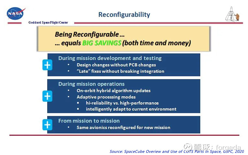 借用戈达飞控中心嵌入式部门(Embedded Processing Group)2020年所说的,FPGA可重构计算能力,本身就意味着低成本大节省。
