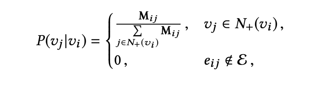 阿里的论文中随机游走的概率公式如下,一个节点 跳转到另外一个节点B的概率等于:这两个节点AB的边权重除以和 节点相连所有边的权重和。