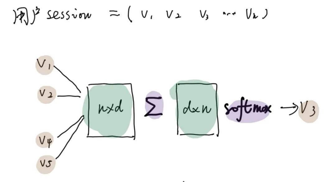 左边的 的参数权重的每一行 既可以被认为是每个item的向量 定义为 ,右边的 可以被认为是学习的权重定义为 。