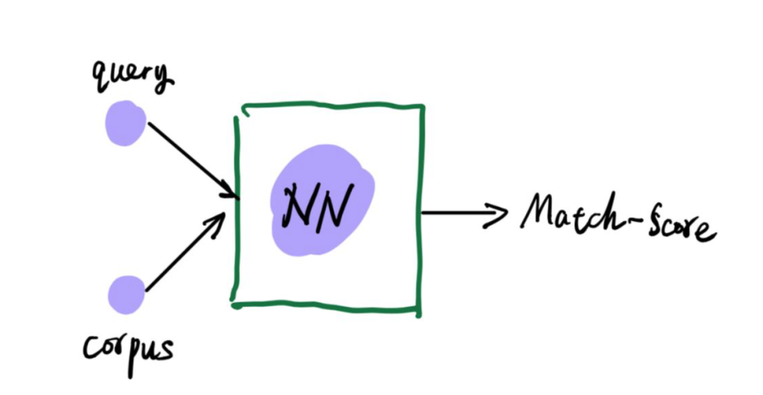 直接将query物品和召回物品一起输入到一个神经网络,这个神经网络最终输入匹配得分,最终通过匹配得分得到期望的输出结果。