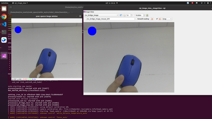 (3)在 上节的robot_vision包里,我们新增一个cv_bridge的小样例,主要功能是在捕捉到的图像上打个蓝色的圆标。