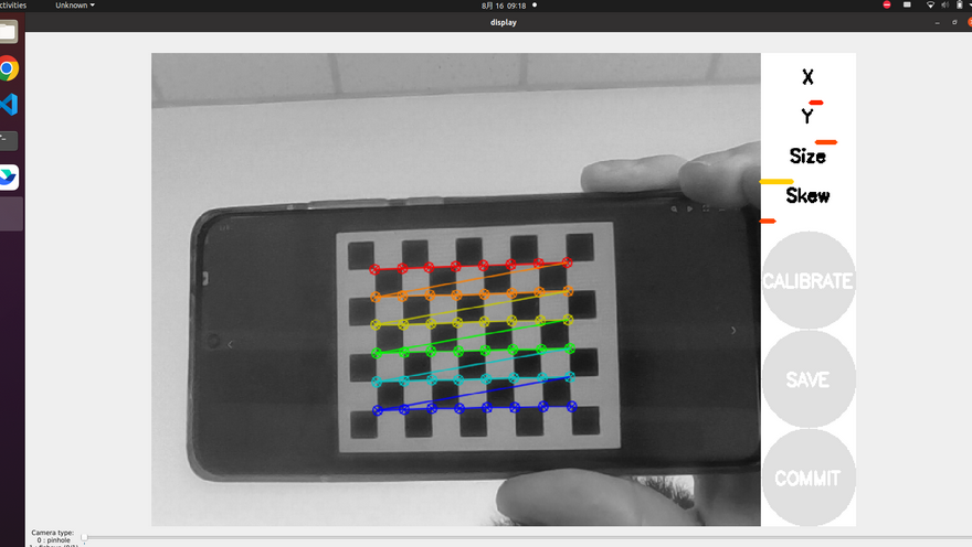不断晃动,直到COMMIT按键亮起,然后点击,即可生成标定文件,本人的路径为:/home/mm/.ros/camera_info/head_camera.yaml。