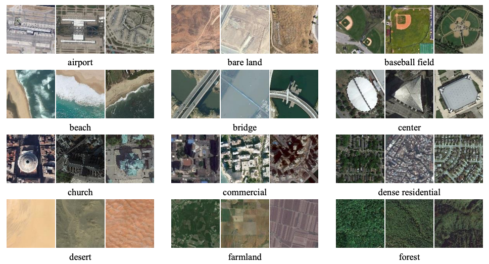 该数据集由华中科技大学和武汉大学于 2016 年发布,相关论文:《AID: A Benchmark Dataset for Performance Evaluation of Aerial Scene Classification》。