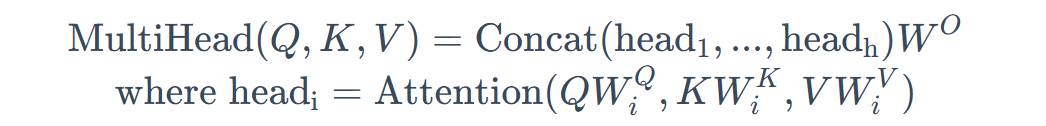 事实上,所谓的多头注意力机制其实就是将原始的输入序列进行多组的自注意力处理;然后再将每一组得到的自注意力结果拼接起来,再通过一个线性层进行处理,得到最终的输出。我们用公式可以表示为:
