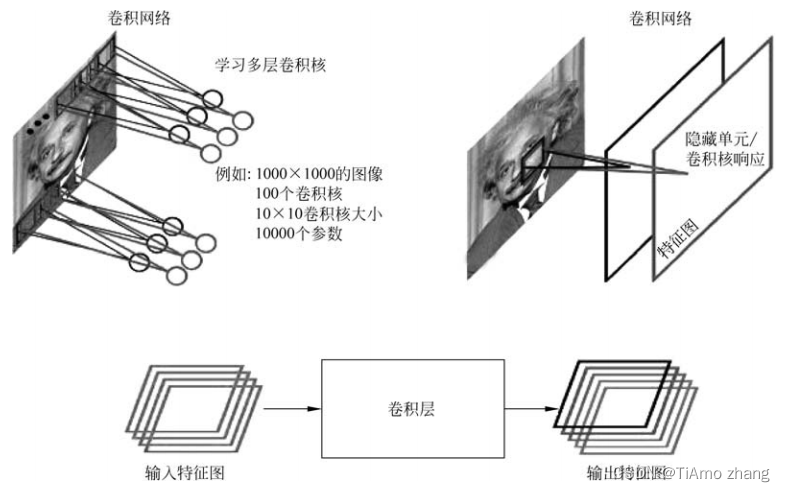 卷积就是两个函数之间的相互关系。在计算机视觉里面,可以把卷积当作一个抽象的过程,就是把小区域内的信息统计抽象出来。例如,对于一张爱因斯坦的照片,可以学习n个不同的卷积和函数,然后对这个区域进行统计。可以用不同的方法统计,比如可以着重统计中央,也可以着重统计周围,这就导致统计的函数的种类多种多样,以达到可以同时学习多个统计的累积和。