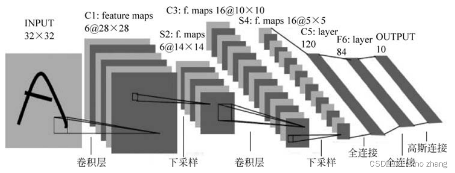 LeNet网络如图3所示。Le是人工智能领域先驱Lecun名字的简写。LeNet是许多深度学习网络的原型和基础。在LeNet之前,人工神经网络层数都相对较少,而LeNet 5层网络突破了这一限制。LeNet在1998年即被提出,Lecun用这一网络进行字母识别,达到了非常好的效果。
