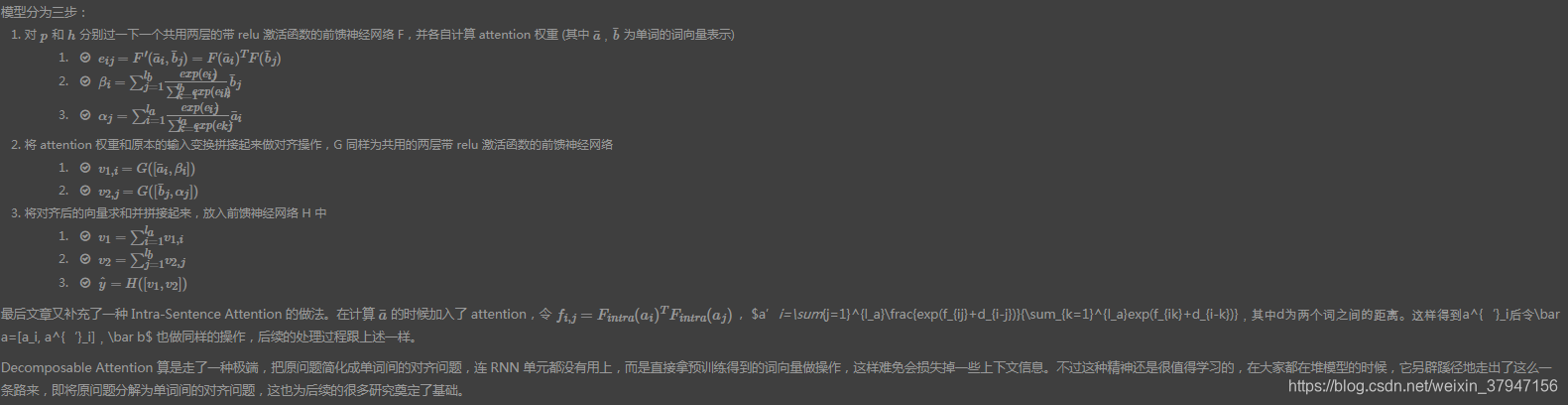 这篇文章全名是 A Decomposable Attention Model for Natural Language Inference,是 Google 那帮大佬发表在 EMNLP2016 的一篇文章。