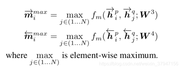4、最后介绍Max-Attentive-Matching。首先计算相似度向量,然后计算最大相似度值对应的位置(每行的最大值为当前word对应另一个文本中相似度最大的word)。